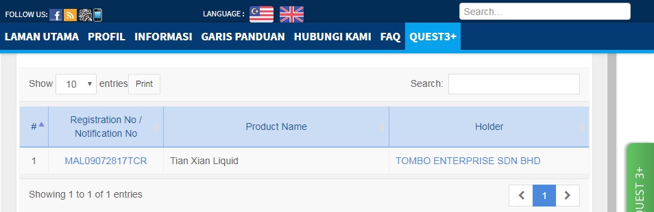 (4) TXL has been registered with the Food and Drug Administration under Ministry of Public Health Malaysia as Traditional Medicine: MAL09072817TCR